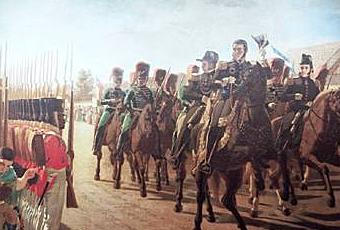 En octubre de 1814, los independentistas chilenos José Miguel Carrera y Bernardo O'Higgins fueron derrotados por los ejércitos realistas españoles, al mando de Mariano Osorio, en la batalla de Rancagua. El artista uruguayo Juan Manuel Blanes imaginó en este cuadro del siglo XIX la salida de las fuerzas chilenas hacia su encuentro con las españolas.