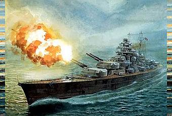 El Bismarck abriendo fuego contra los enemigos del Reich.