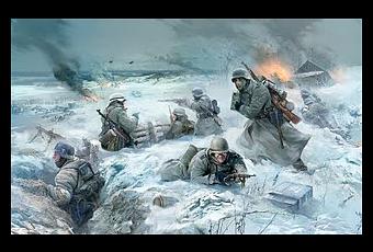 Representación artística de los heroicos combates defensivos que están plantando los soldados alemanes.