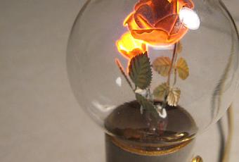 Desde los años 1930 hasta los años 70, Aerolux Light Corporation produjo estas sorprendentes bombillas de novedad que contenían filamentos escultóricos en forma de flores, pájaros y miles de otros diseños que iluminarían en diferentes colores. Los bulbos contenían una mezcla de neón o argón (o ambos) y algunos de los componentes se revistieron con fósforos para conseguir diferentes efectos de color.