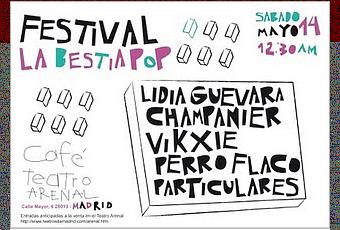 El próximo 14 de mayo el Café Teatro Arenal acoge la Primera edición de “La Bestia Pop Festival” con cinco artistas de primera: Lidia Guevara, Marcelo Champanier, Vikxie, Perro Flaco y Particulares.