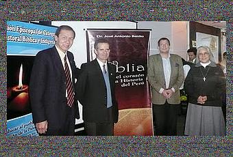 Como clausura a los numerosos actos de la Expobiblia en su edición 2011, la Comisión Episcopal de Catequesis, pastoral bíblica y pastoral indígena llevó a cabo la presentación del libro "La Biblia en el corazón de la historia del Perú. Apuntes para el estudio de su difusión" del que es autor nuestro colaborador Dr. José Antonio Benito. Al acto organizado como toda la EXPO BIBLIA en el Parque Kennedy de Miraflores tuvo como animadora y presentadora a Marita de la Sociedad San Pablo acudió un numeroso y entusiasta público. Abrió el evento el Pastor Juan Chang, de la Sociedad Bíblica Peruana y coordinador de la Expobiblia, quien mostró su satisfacción por acoger esta obra que honraba la historia bíblica y el pueblo del Perú. Como comentarista de la obra actuó el Dr. Teodoro Hampe Martínez, historiador, quien presentó al autor, contextualizó la obra en el marco de la historia cultural del Perú y sintetizó el libro. A continuación, el autor narró el proceso de elaboración de la obra y animó especialmente a encontrarse con Cristo a través de la Palabra de Dios. Por último, la Hmna. Eleana Salas, de la CECPBCPI, agradeció a los ponentes y asistentes, invitándoles a un vino de honor. Varios de los concurrentes quisieron intervenir y alguno lo hizo para agradecer por el evento. Culminó con la firma de ejemplares y un animado coloquio entre los asistentes.