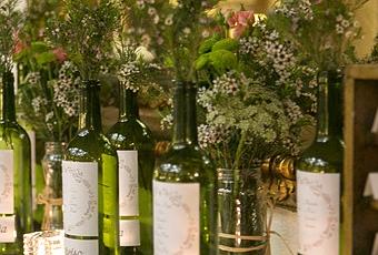 Así monté el seating plan, con botellas y un taquillero antiguo de hotel que guardaba cada nombre por orden de mesa.