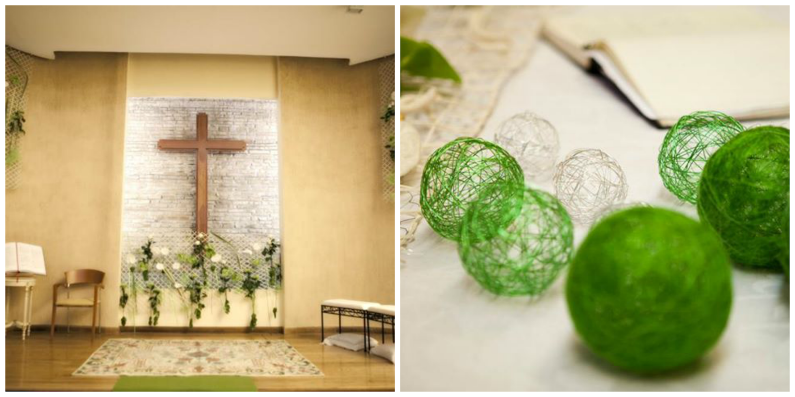 Su ceremonia nupcial fue religiosa. Para adornar la iglesia eligieron tonos verdes, tanto para la alfombra como para el resto de los elementos decorativos.