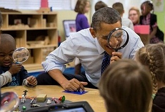 El pasado 15 de febrero, el presidente Barack Obama a través de su cuenta Twitter @BarackObama, tuiteó una foto, que para el momento de ser tomada podría ser catalogada como una simple broma, según varios sitios web.La foto muestra al presidente de los Estados Unidos examinando a un grupo de escolar con una lupa. La imagen está acompañada del texto “I spy...” (Soy espía) .
