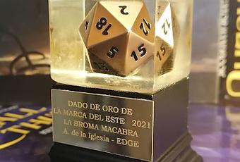 Vamos a empezar el día felicitando a EDGE Entertainment España y sobre todo a Alex de la Iglesia, ya que han sido los ganadores del Dado de Oro 2021, que concede el Grupo Creativo La Marca del Este, por el suplemento y modulo La Broma Macabra para La Llamada de Cthulhu. Premio que ha sido anunciado en la web de La Marca del Este (Se puede ver el articulo en este link).