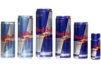 refrescos de cola y bebidas energéticas. Una lata de la popular bebida energética Red
