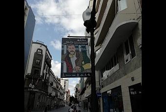 Una de las principales calles de la capital grancanaria, la calle Triana, se ha unido al Centenario Galdós 2020, como podemos comprobar en las fotografías que ilustran esta entrada: de sus farolas cuelgan carteles con su figura y una de las ópticas más conocidas de la isla que tiene su sede en ella dedica su escaparate a este universal escritor canario.