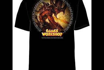 La camiseta tiene un Heraldo de Khorne(El de la portada del Codex Demnios,dato curioso),con un lema rodeando la imagen.Traducido al ingles del alemán quedaría :"Beyond the veil lie madness and the end of the world".Si lo pasamos al español se traduciría como "Mas allá del velo,yacen la locura y el fin del mundo".Nuestro compañeros de Lexicanum ven una cierta ironía en la utilización de este eslogan,sobre todo cuando parece ser que el precio de las entradas se ha disparado hasta ser el doble y que el tema del Games day/Golden Demon ha quedado completamente desvirtuado por las ultimas medidas que parece que se van a tomar.