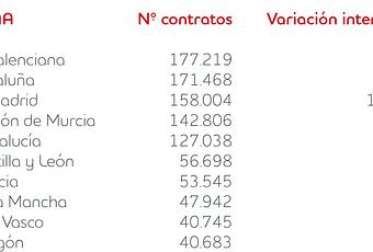 Hacia la segunda mitad de la tabla se sitúan Navarra, donde se prevén firmar 38.850 contratos, Cantabria, con más de 22.500 puestos de trabajo, Canarias, con 16.380, y Asturias, con la previsión de alcanzar casi los 10.500 nuevos empleos.