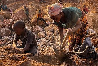Mujeres y niños pequeños extraen el metal a mano y sin la más mínima medida de seguridad