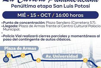 El Ayuntamiento de San Luis Potosí confirmó que la Carrera Panamericana llegará nuevamente a la capital este miércoles, marcando la cuarta ocasión consecutiva en la que el municipio funge como sede de esta competencia automovilística considerada la más antigua de Latinoamérica.