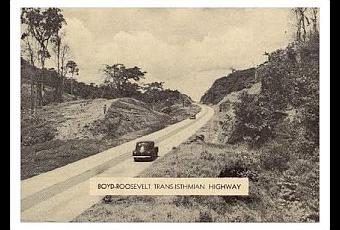 Fotografía parcial de la vía Transístmica recién constituida en el año de 1943. Obsérvese las características del paisaje natural y la ausencia de asentamientos poblacionales.
