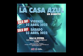 Los días 22/4 y 23/4 en La Riviera podremos encontrar a La Casa Azul presentando canciones como No hay futuro y otros singles actuales o El Momento, Podría Ser Peor o La Revolución Sexual; con todo mostrará un directo que será una verdadera pista de baile por todo lo alto.