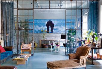La decoración de sus tiendas (a las que pertenecen las imágenes anteriores) no tiene desperdicio pues están repletas de mobiliario y objetos vintage que también se puede adquirir. Esto demuestra el amor por la decoración de este hombre, pasión que ha trasladado a su hogar, una vivienda con espacios comunicados, amplísimos y muy luminosos, llena de piezas excepcionales, unas recuperadas, otras de diseño en amable diálogo. El resultado está a la vista: una casa preciosa en la que no debes dejar de perder detalle.