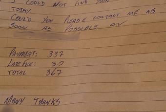 Escribo a la no-agente para decirle que me voy de ahí y le dejo esta nota al de la moto, porque va a ir al día siguiente otra vez para ver si pago. Y no pienso pagar: