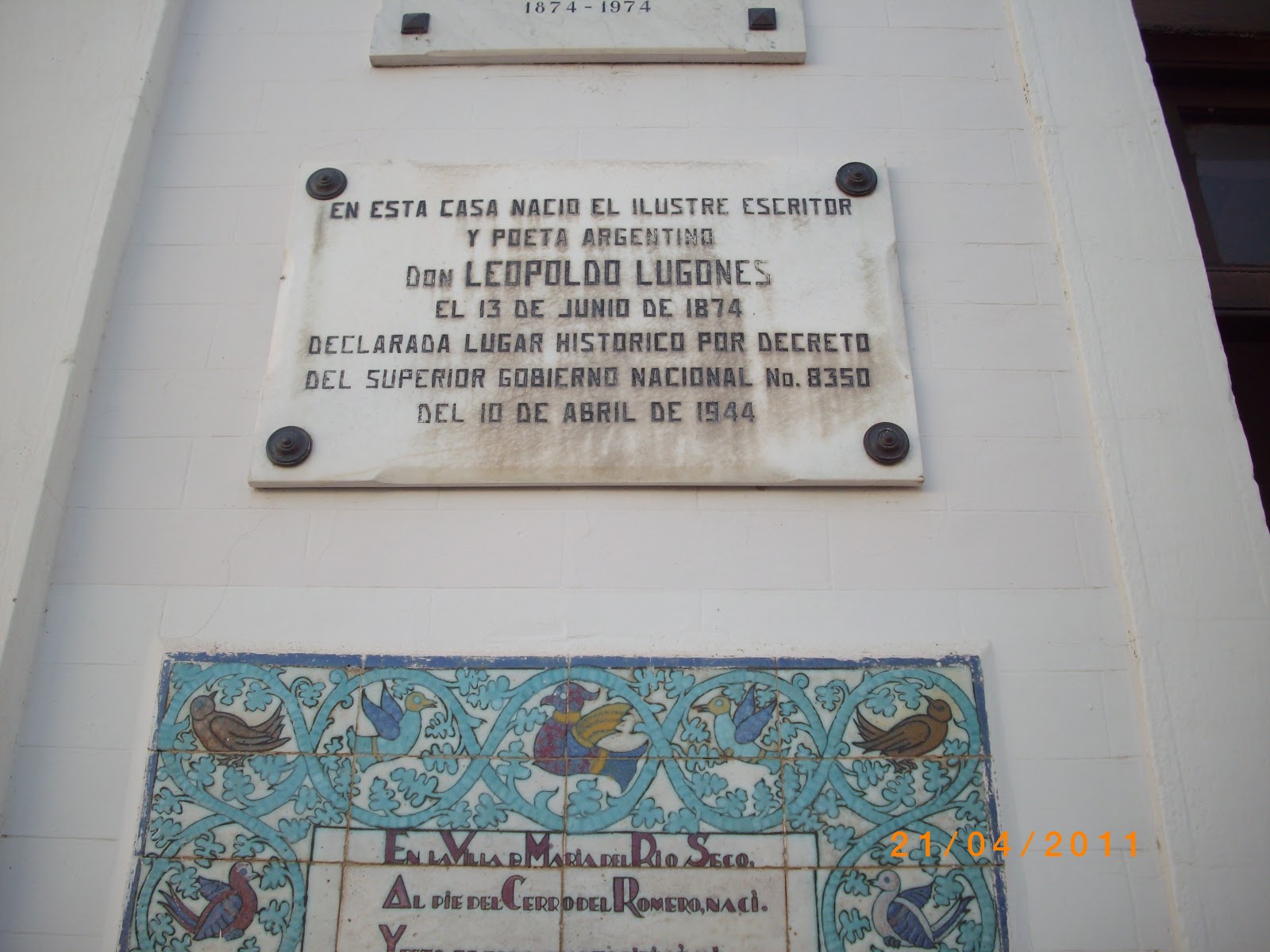 Casa natal del prestigioso escritor, poeta y controvertido político argentino, Leopoldo LugonesVilla María de Río SecoProvincia de CórdobaDeclarada: Monumento Histórico Nacional, Decreto 6.183 / 1957