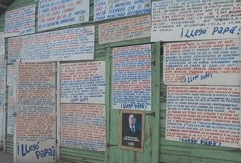El propietario de esta vivienda ubicada en la avenida Bartolomé Colón (Santiago), es tan fanático de Hipólito Mejía que decidió forrar su casa con letreros de denuncias contra el gobierno y de promoción del candidato presidencial del PRD.