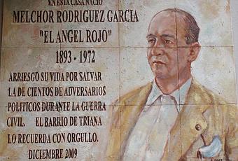 En la fachada del número 23 de la trianera calle San Jorge nos encontramos con este azulejo dedicado a Melchor Rodríguez García, a quien el barrio de Triana le dedicó este sentido homenaje en el año 2009.