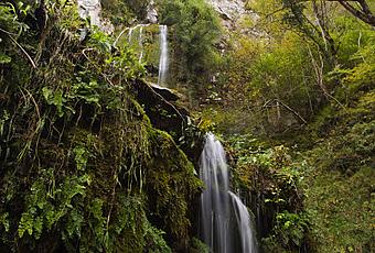 Debido a la elevada humedad, las paredes se encuentran completamente cubiertas de musgos y epífitas, dando un aspecto casi tropical, como si estuviéramos en el monteverde de Costa Rica. Después de unas pequeñas pozas, el agua se encauza en un pequeño canal ganando velocidad hasta unirse con el Sella.