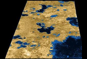 La sonda Cassini de la NASA ha fotografiado los lagos de metano en el “trópico” de la luna Titán de Saturno. Uno de los lagos parece tener la mitad del tamaño del Gran Lago Salado de Utah, con una profundidad de por lo menos 1 metro, un resultado inesperado, ya que los modelos habían asumido que las masas compactas de líquido sólo existen en el polos.