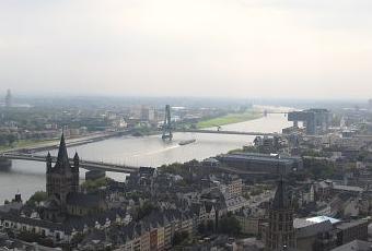 Desde lo alto de la catedral de Colonia (Köln dicen los alemanes) se puede disfrutar de unas vistas espléndidas aunque la ascensión se las traiga y no esté indicada para viajeros con vértigo y claustrofobia, por la altura y, sobre todo, por la aglomeración de turistas empeñados en portar sus mochilas. La ciudad de los Ubios fue fundada por los romanos a orillas del Rin y desde este observatorio se ven los puentes construidos mucho después sobre el río. La catedral comenzó a edificarse en 1248, al parecer, sin prisa. El proyecto se dio por terminado en 1880. Cuentan que acoge los restos de los Reyes Magos, transportados desde Milán en 1164. Aquí se inventó a principios del siglo XVIII el agua de colonia. No es broma, el padre de la idea fue un italiano, Giovanni Maria Farina. La octava generación de la familia todavía vende perfumes en la ciudad.
