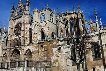 La Catedral de León, o Pulchra leonina, es conocida por llevar al extremo la «desmaterialización» del arte gótico, es decir, la reducción de los muros a su mínima expresión para ser sustituidos por vitrales coloreados, constituyendo una de las mayores colecciones de vidrieras medievales del mundo.
