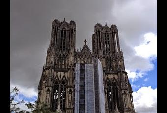Artisticamente la catedral de Reims es un bello ejemplo del arte gótico del siglo XIII, pero además desde le punto de vista histórico tiene una gran importancia ya que fue aquí donde San Remigio bautizó a Clodoveo, el primer rey de los Francos y desde entonces más de 25 monarcas han sido coronados en esta catedral. El último Carlos X en 1825.Gran parte de la catedral fue destruida durante la I Guerra Mundial y con motivo del 1500 aniversario del bautismo de Clodoveo, la filantropía americana, con la familia Rockefeller a la cabeza, puso el dinero suficiente para su reconstrucción.