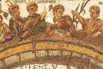 mosaico de los toros y el banquete. Museo del Bardo, Túnez