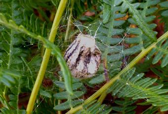 El otro día estuvimos por Francia. En un campo cubierto de helechos, encontramos el nido que fabrica la araña tigre (Argiope bruennichii) colgado entre los tallos y frondes. En este nido, los huevos pasarán el invierno a salvo de las bajas temperaturas esperando que se suavicen en la primavera-verano del año siguiente cuando nacerán las pequeñas arañitas.
