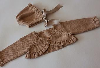 Tanto chaqueta como capota están tejeras a máquina. Las costuras, remates y los volantitos si que son hechos a mano.