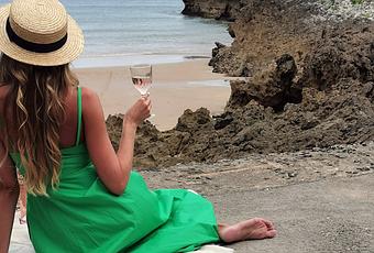 En el post de hoy, os traigo un look con un vestido de esos que, cuando lo encuentras, no lo puedes dejar escapar de lo bonito que es. Son de esos vestidos que pasarán a formar parte de tu fondo de armario por mucho tiempo. Tiene un color espectacular y no puede ser más favorecedor. En este caso quería darle un toque bucólico acorde con la ubicación La playa de los Curas o de los Frailes debe su nombre a que era utilizada antiguamente por los religiosos que vivían en el Monasterio de San Salvador de Celorio, ya que la pequeña cala que constituye esta playa tiene un acceso justamente desde la parte trasera de la Iglesia homónima que se sitúa junto al mencionado monasterio, por debajo de las ruinas de una torre conocida como “Torre de las Cámaras». Otra forma de acceder a ella es a partir de la contigua playa de Las Cámaras en marea baja, en este caso nos situamos en las ruinas de la torre lugar de encuentros juveniles y en este caso un marco precioso para un pequeño 'picnic' acaso hay mayor placer que un vino contemplando el mar, para esta ocasión elegi un vino rosado de Born Rosé que a mi personalmente me encanta.