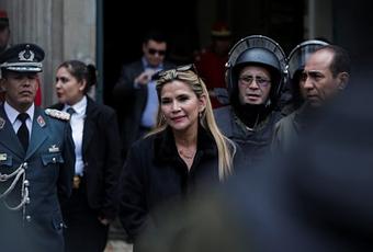 La presidenta interina boliviana, Jeanine Áñez, participa en una ceremonia con la policía frente al Palacio Presidencial en La Paz, Bolivia, el 13 de noviembre de 2019.