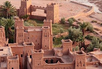 La ciudad de Ait-Ben-Haddou, situada en las laderas meridionales de las montañas del Atlas, es uno de los más espectaculares paisajes artificiales a lo largo del valle en el desierto rocoso de Marruecos. La ciudad es mejor conocida por sus kasbas, los grandes edificios de tierra que se aglomeran detrás de los muros defensivos, reforzados por torres de esquina. Tal ciudad es conocida como ksar, o una ciudad fortificada, y Ait-Ben-Haddou se dice que es uno de los mejores ejemplos de un ksar de arquitectura marroquí