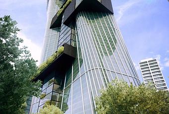 Símbolo de Parramatta nueva subida, el concepto de diseño de las torres de oficinas 5 y 6 se expresa tanto a través de un par de giro vertical y proyección hacia el exterior hacia el centro público.