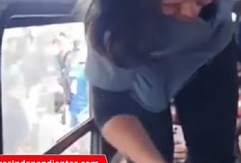 En un video de 38 segundos, grabado por uno de los pasajeros, se aprecia cómo la mujer avanza desde la parte trasera del vehículo hacia la parte delantera.