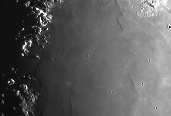 La imagen no es de calidad, había mucha turbulencia y se resiente la definición y el enfoque. Pero resulta interesante por mostrarnos el domo con bastante claridad. En su superficie se ven unos cinco picos, que realmente son estribaciones aisladas de los cercanos montes Caucasus casi engullidos por la lava del Mar de la Serenidad cuya cuenca se rellenó después y que realmente ocupa casi toda la imagen.