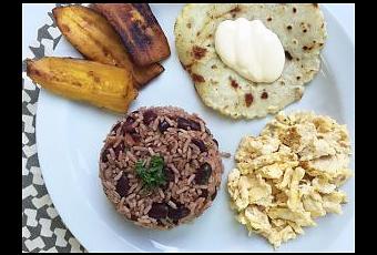 Este platillo se caracteriza por su base de arroz y frijoles, que se puede acompañar con huevo, maduros, queso o natilla y una tortilla palmeada