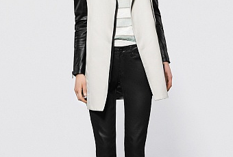 También minimalista es esta especie de rebeca-abrigo que he encontrado en Uterqüe, que también viene en blanco y negro esta primavera. Mi problema con este tipo de prendas es que no abrigan lo suficiente como para llevarlas solas pero tampoco dejan ponerse un abrigo encima, y eso por el sur significa que no se le va a sacar mucho partido. Monísima, aunque barata no es: 129 euros.