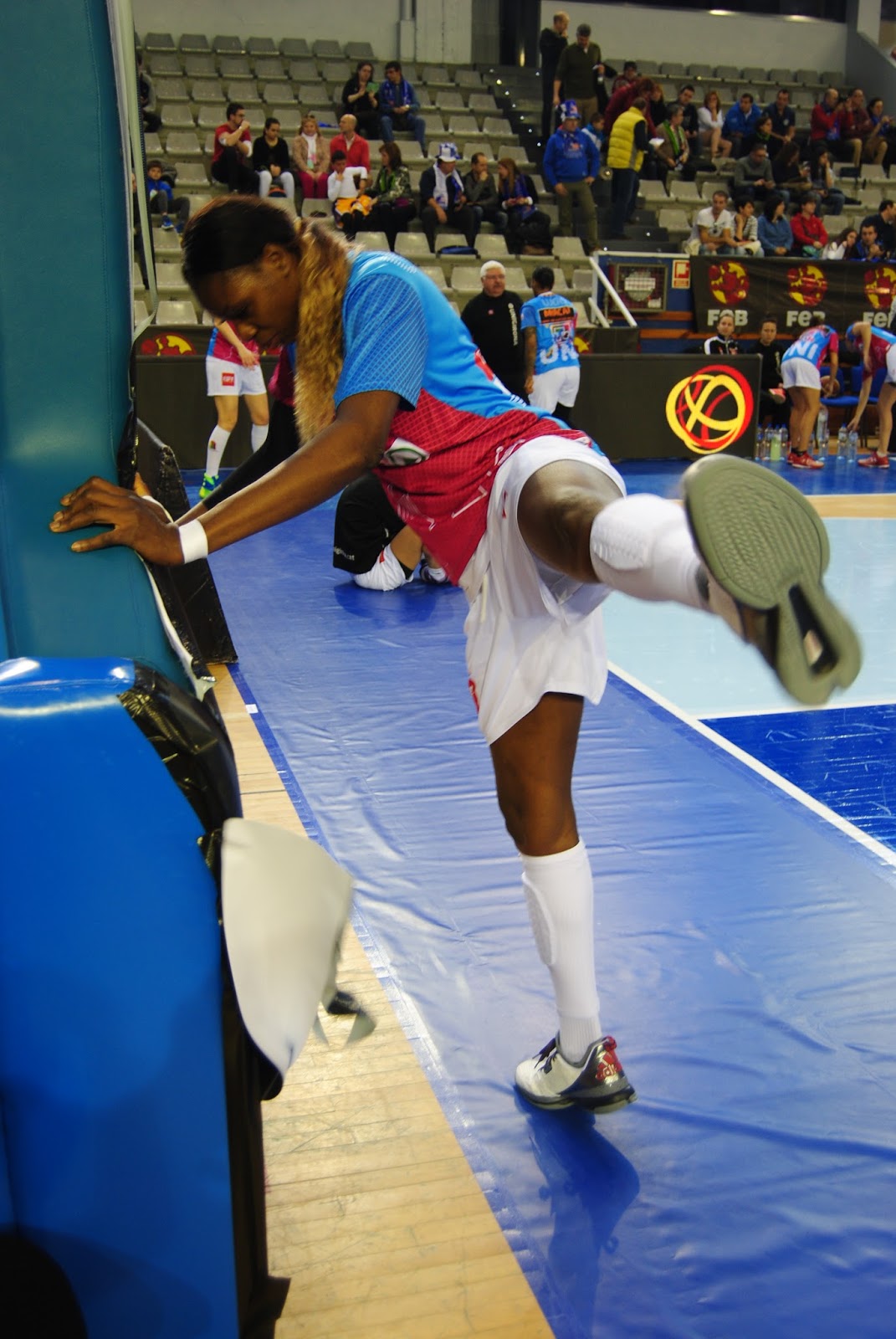Ritual. Estiramientos de Coulibaly antes de la semifinal ante Perfumerías Avenida.