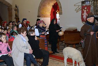 Concluido el canto de los pastores, uno de ellos, el que pidió la licencia, toma la cordera en brazos y la ofrece ante el portal del nacimiento.