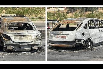 En estos días en los que los incendios acapararon las portadas de la actualidad, hay uno que, en una mayor medida, por cercano y por las controversias que suscitó y aún suscita, acaparó más mi atención.Ocurría esta semana en los aparcamientos exteriores del Centro Comercial Xanadú, cuando, tras arder largo tiempo, una decena de coches quedaron absolutamente carbonizados, reducidos a su osamenta.La polémica en la que se sumergieron medios de prensa y redes sociales se debatió entre estas dos posibles causas:- una colilla mal apagada.- la explosión de la batería de un coche eléctrico.Personalmente, acostumbrado a vivir rodeado de la manipulación y escasa objetividad de los medios, admito que me produce una mayor disfagia el pensar en la culpabilidad de una colilla, para tan aparatoso desastre.Los diferentes diarios divagaron entre estas dos posibilidades, sin definir claramente su inclinación, salvo uno, por cierto que un tanto partidista, a tenor de su nombre (https://somoselectricos.com), del que deducís su postura.Comparto con vosotros unas imágenes de la tragedia, las de dos coches que se prolongaron en retirar (las autoridades y los vigilantes no me dejaron fotografiarlos antes).