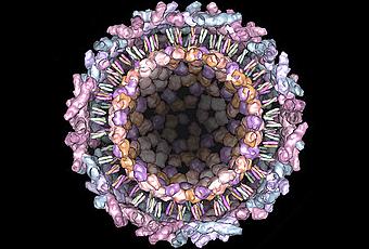 En cuanto a su material genético, nos encontramos con un virus de RNA de cadena sencilla y polaridad positiva, sin partir, lineal, de unas 11,8 kb, aproximadamente. Codifica 4 proteínas no estructurales y 5 estructurales, rasgo característico de los Alphavirus. Cuando hablamos de proteínas no estructurales, nos referimos a las necesarias para la replicación. Las otras, obviamente, estarán implicadas en la estructura externa (e interna) del virus. Un buen resumen de los Alphavirus lo tenéis aquí, en la página amiga de los taxónomos Viralzone Porque la gente que se dedica a taxonomía de virus también tiene amigos. Como si fuesen personas y todo...