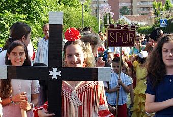 Las alumnas iban con sus vestidos de gitana o de rociera según sus gustos para dar un toque de color y alegría a la procesión. Muchas de ellas portaban unas varas con una cruz.