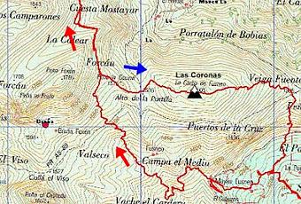 LAS CORONAS (1605 m), nombrada en los mapas como La Carba Fusneo aunque la carba, en realidad, es toda la ladera meridional de esta cumbre