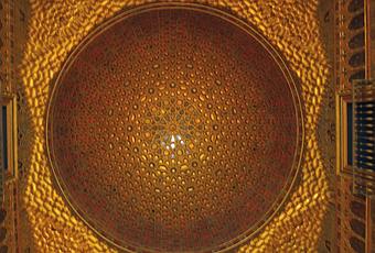 Ya hemos podido ver algunos esbozos de la nueva (5ª) temporada de la serie televisiva Juego de Tronos. El Reino de Dorne (uno de los siete reinos de Westeros, el más sureño) está ambientado en el Alcázar sevillano y una de las imágenes ofrecidas por la productora HBO nos muestra la hermosa cúpula del salón de los Embajadores.