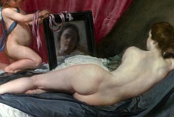 El espejo es la otra clave aquí, y no la menor de ellas. Velázquez es un genio que va más allá de lo pictórico. El mundo suyo, mediados del siglo XVII, era un mundo que ya habría aprendido, filosóficamente, de casi todo lo anterior. Y él lo sabría, y lo compartiría. La Belleza ganará aquí de una forma asombrosa. Por eso fue esta obra agredida por una sufragista en el Londres de 1914. Representaba la Belleza perfecta, la más sugerente, la más terrenal posible -otro rasgo barroco-, frente a la espiritual por ejemplo de los renacentistas. Cupido, el pequeño dios del Amor -su propio hijo- sostiene aquí el espejo convencido de que su madre es la vencedora, la que esclavizará al amor inevitablemente. Y así es siempre. Se quiera o no. Y el pintor la compone así, maravillosa, exultante, clásicamente voluptuosa... Pero para ello, para poder hacerlo así de atrevido en aquellos años, no pintará aquí su rostro, ni siquiera un poco de perfil. Nada, no se verá el rostro de la modelo. Salvó el pintor así dos cosas, también. Una la identidad de una modelo, que para entonces podría ser algo delicado. Pero, lo más importante, ayudaría a justificar aquí un espejo que reflejara así el rostro de esa Belleza. De este modo subsanaría Velázquez la eventualidad de la espalda. ¿Un retrato sin rostro visible en el Renacimiento o en el Barroco? Nunca. Si acaso, reflejado luego en un espejo para salvar este pequeño detalle.