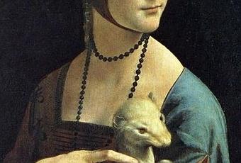 Da Vinci retrató a Cecilia Gallerani con peinado y vestimenta “alla spagnola”, portando en brazos un pequeño armiño, emblema que alude a Ludovico El Moro, conocido también con el sobrenombre de “ermellino”, por haber recibido en 1488 la Orden del Armiño que le concedió Don Fernando I de Aragón, Rey de Nápoles.