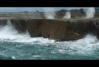 Los bufones en unión a las olas del Cantábrico rugen como fieras al comprimirse en las grietas de los acantilados del concejo de Llanes, en el oriente asturiano, con chorros de agua que pueden alcanzar hasta los 20 metros de altura.