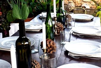 He puesto un montón de fotos para que lo veaís y si os sirve como ayuda pues mejor que mejor aunque creo que las fotos no captan lo bonito que estaba. Vale la pena decorar un poquito, aunque no sea lo más importante de una cena si que crea un ambiente que favorece la reunión de amigos.